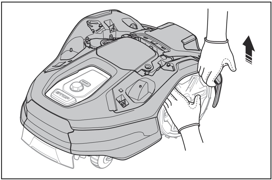 Follow these steps to remove the top cover and body of Automower® 305E NERA, 310E NERA, 405XE NERA and 410XE NERA, for example, if your robotic lawn mower requires a thorough cleaning.